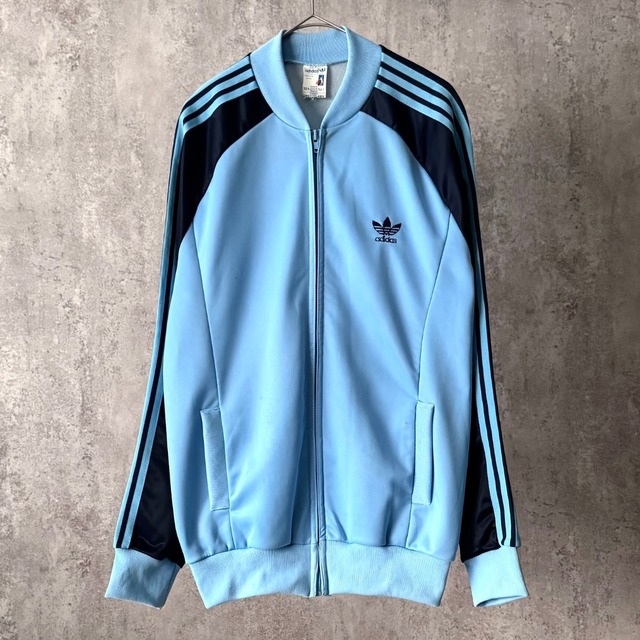 古着市場のスポーツブランドの中でも 随一の人気を誇るご存知『アディダス』から 数多く種類のある、 このブランドのトラックJKTの中でも 最も有名かつ希少価値の高い人気アイテム ''ATP''トラックJKT ATPとは『世界プロテニス協会』の事で 70~80年代当時、アディダスはATPの オフィシャルサプライヤーとなっていました このATPはジャミロクワイや oasisのギャラガー兄弟、Run-D.M.C.をはじめ 様々なミュージシャンにも愛された カルチャーアイテムとしても知られています こちらはそのATPの中でも初期型 フランス製の非常に貴重な逸品 襟無しのスッキリとしたフォルムに フランスの繊維会社Ventex社製の アセテート48% ポリエステル52%混紡素材から成る ATP特有の光沢感がたまりません この抜群の雰囲気は 当時物のATPならではの魅力です ライトブルー×ネイビーカラーの2トーンに アームにはお馴染みの3本線 人気の寒色カラーで需要の高い1着 実寸S、M程度の ややタイト目なサイズ感が''今っぽい雰囲気''で メンズ、レディース共にオススメ アディダスの歴史やカルチャーを感じつつ タウンユースで着るのにも最適な スペシャルアイテムです 【size.material】 肩幅 ラグランスリーブの為計測不可 身幅 53㎝ 着丈 67㎝ 袖裄丈 73.5㎝ サイズ表記 無し 素材 ポリエステル52% トリアセテート48% カラー ライトブルー、ネイビー 【condition:C】 フロント右胸下辺りに汚れがございます。 (画像16枚目参照) フロント右ポケット付近にシミ汚れがございます。(画像17枚目参照) フロント左ポケット付近にシミ汚れがございます。(画像18、19枚目参照) 袖リブにシミ汚れがございます。 (画像20枚目参照) 裾リブに薄っすらシミ汚れがございます。 バックにも所々シミ汚れがございます。 その他全体的に古着特有の使用感がございます。 上記考慮の上でのお値段となっております。 当店では古着、used商品を扱っている為、 商品の状態をランク付けしております。 ご購入前にご確認をお願い致します。 【condition rank】 S S▶︎新品、未使用品。 S▶︎使用感やダメージがほぼ無いused品。 A▶︎多少の使用感があるused品。 B▶︎使用感があり、多少の汚れなどダメージがあるused品。 C▶︎使用感があり、汚れなどダメージのあるused品。 【注意事項】 平置きで採寸しておりますので多少のずれが生じる場合がございます。 used商品の為 返品、交換、クレーム等はお受けできません。 商品の詳細記載しておりますので 確認した上でご購入下さい。 ご理解、ご協力を宜しくお願い致します。 掲載商品は店頭販売もしております。すれ違いで売れてしまった場合、オーダーをキャンセル、返金させて頂く場合がございますのでご了承下さい。 配送日日時指定希望はヤマト運輸を選択された場合のみ有効です。 レターパックプラスの場合は適用されませんのでご注意下さい。 配送方法がレターパックプラスの場合、 A4サイズの専用封筒に商品を出来るだけ コンパクトに包装して発送する為、 封筒に厚みやシワが入って届く事もございます。 予めご了承ください。