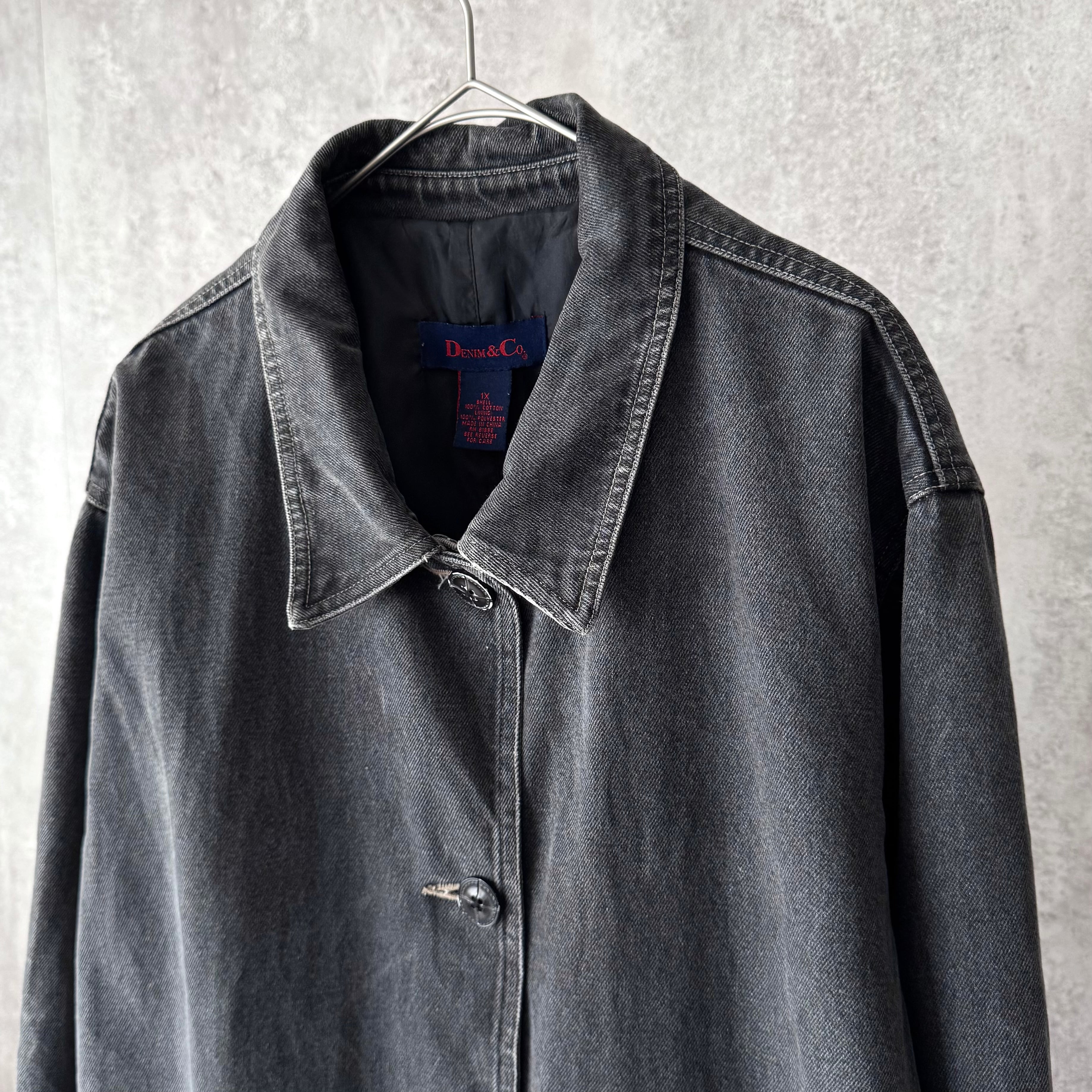 90s~ Denim & Co black denim coat