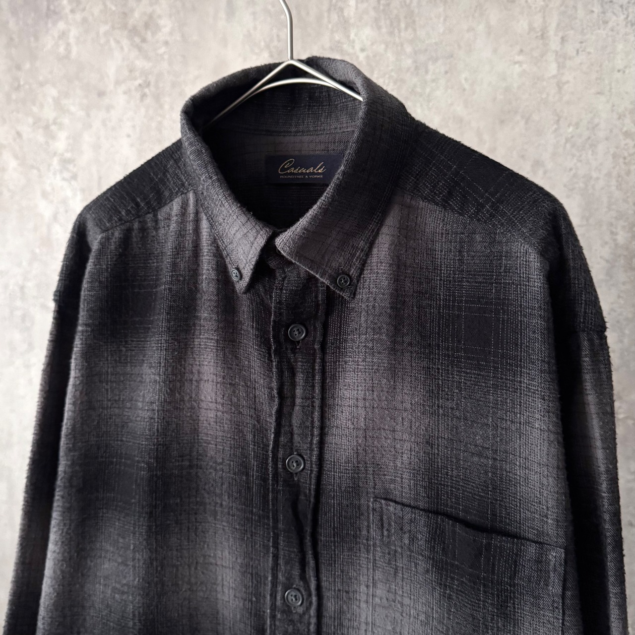 00s Roundtree&Yorke ombre check pattern cotton flannel BD shirt