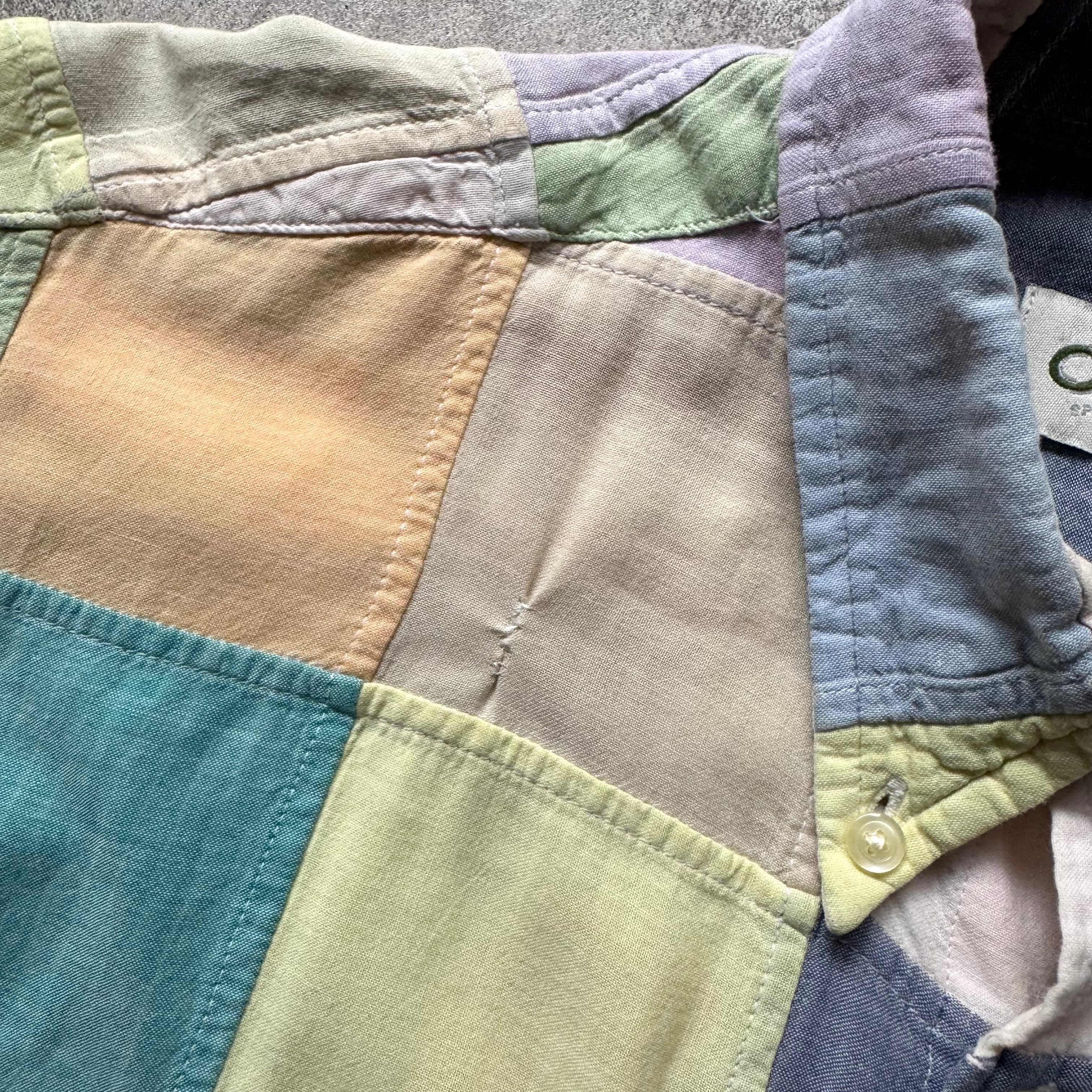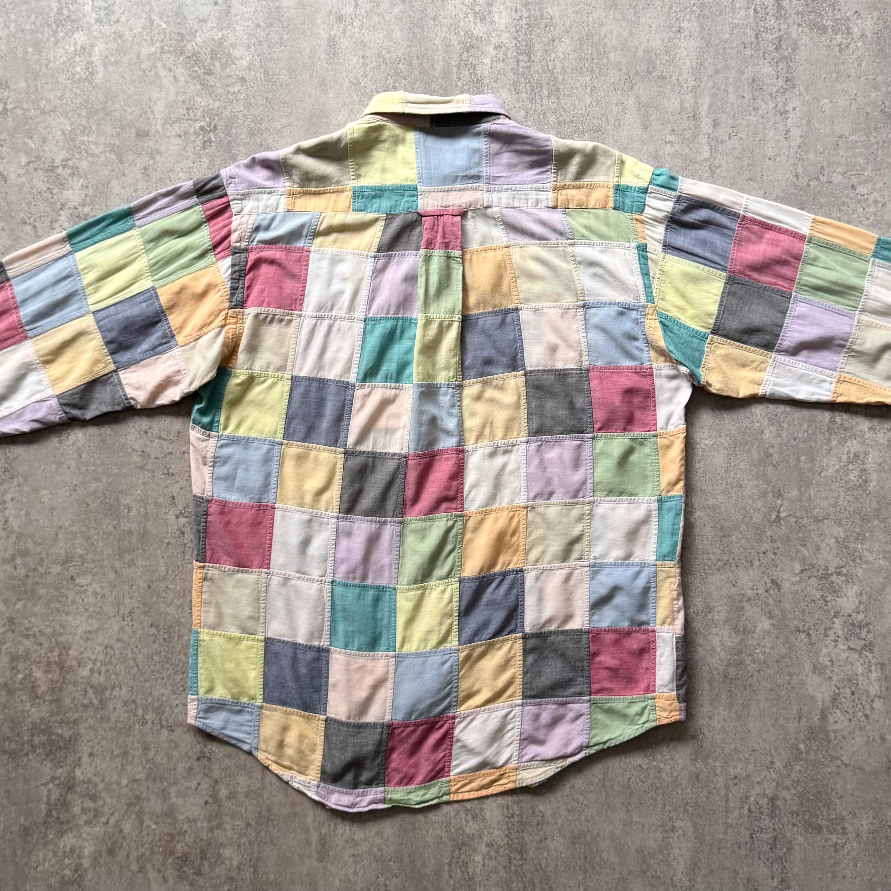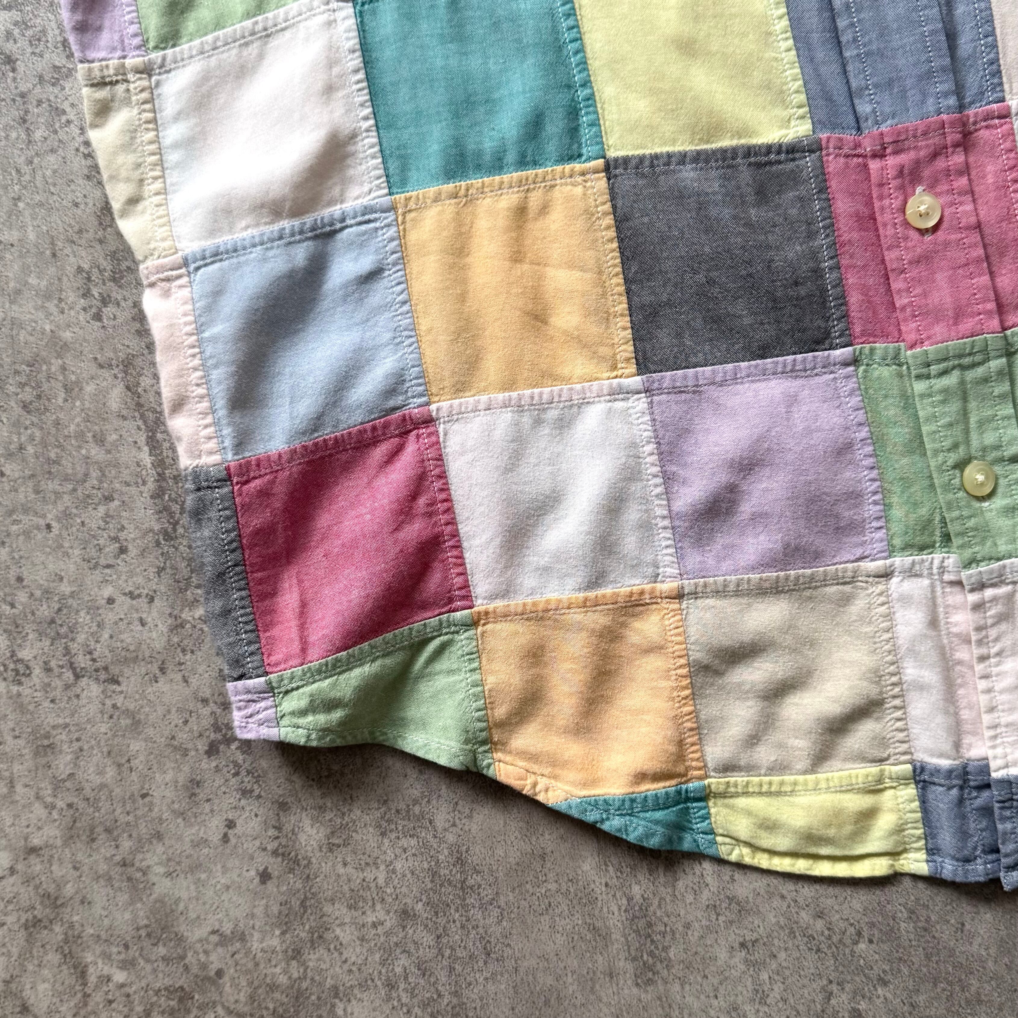 爽やかなパステルカラー調のパッチワークシャツ