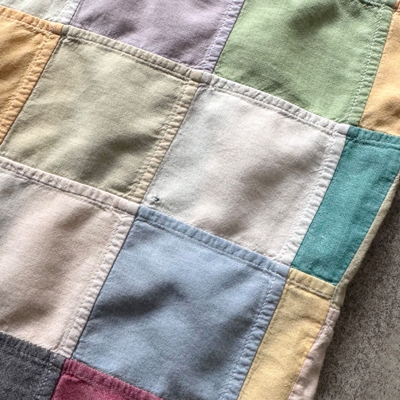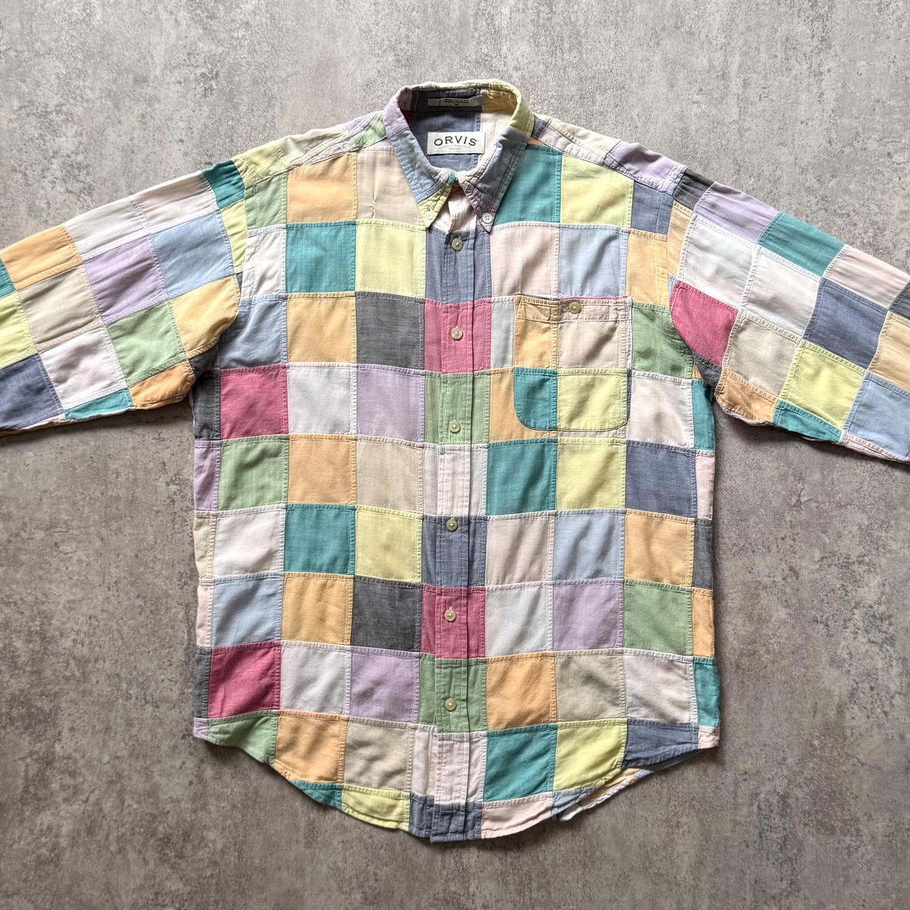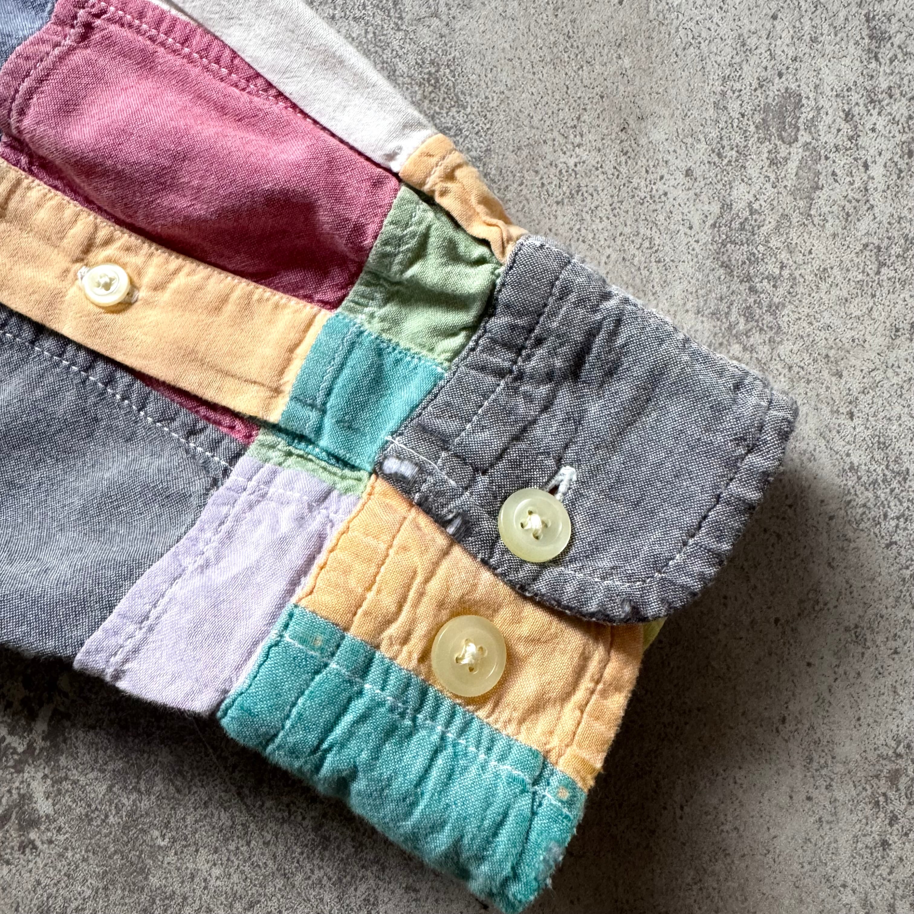爽やかなパステルカラー調のパッチワークシャツ