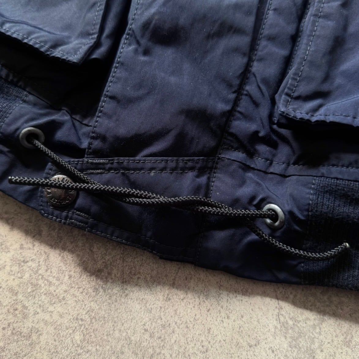 裾ドローコード部分の調整金具が欠損しております。(画像19枚目参照)