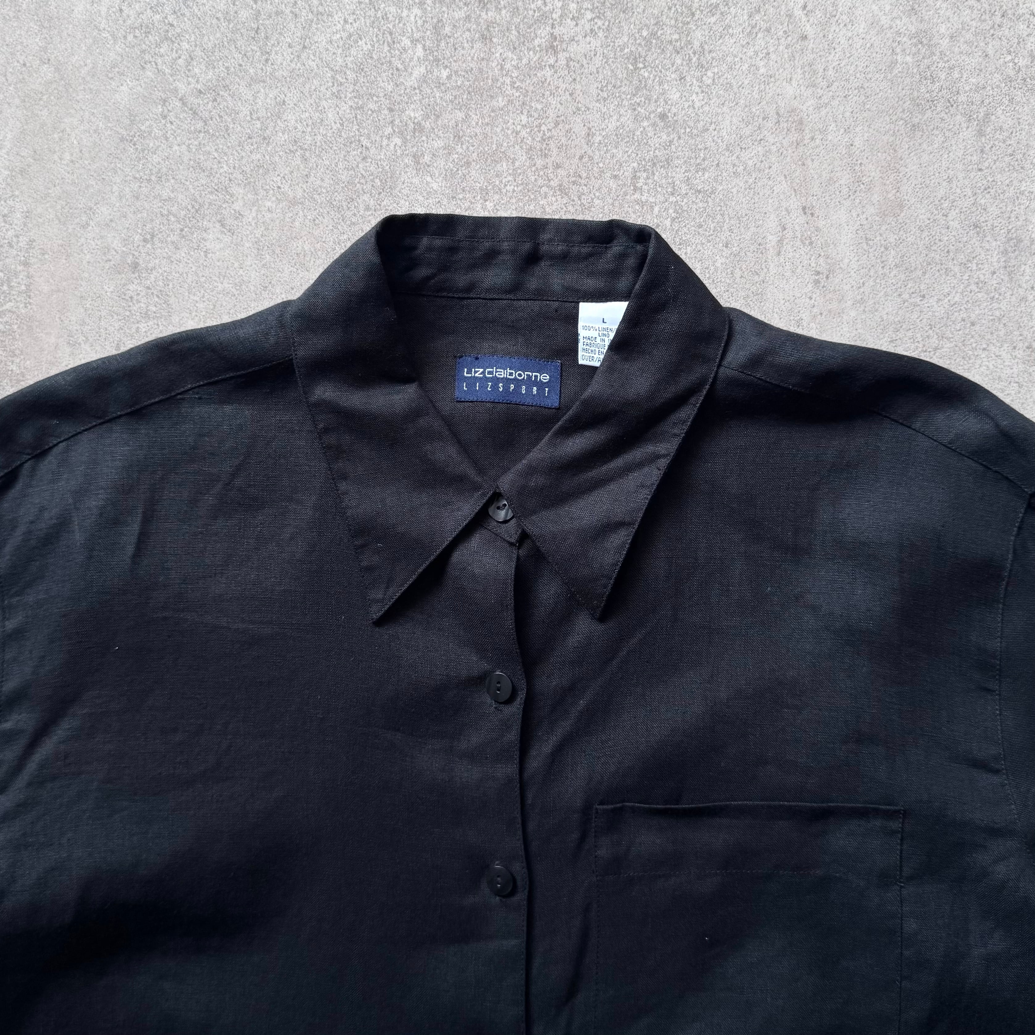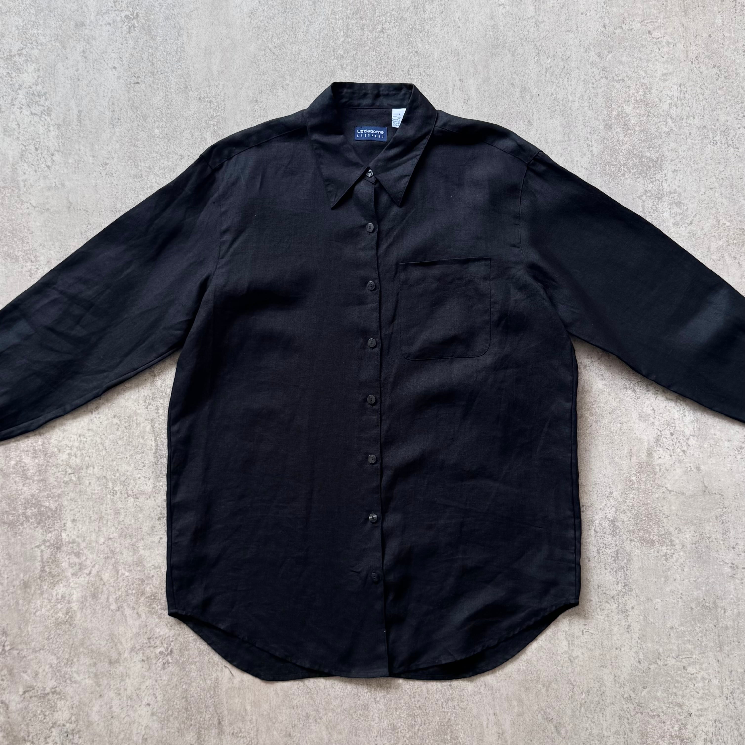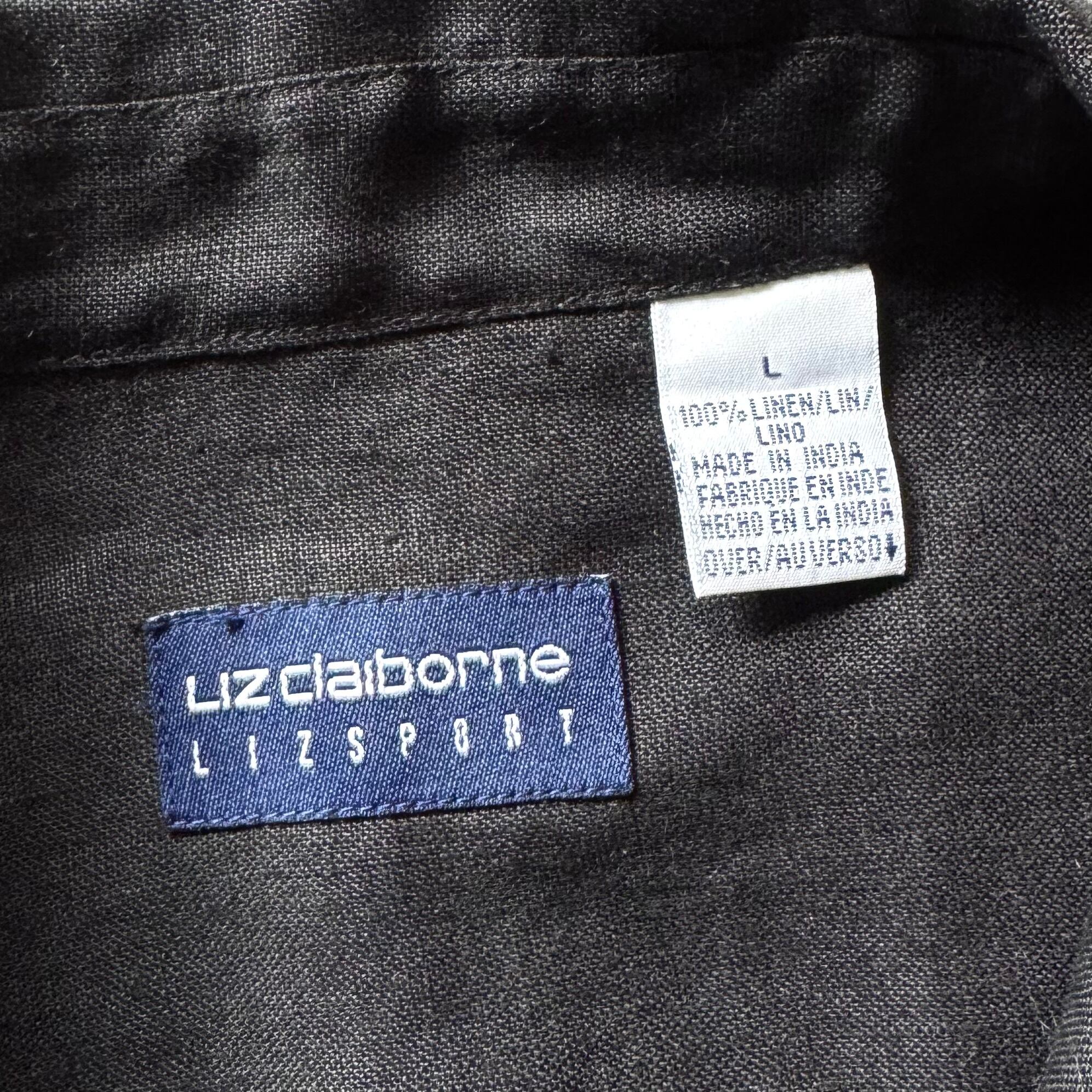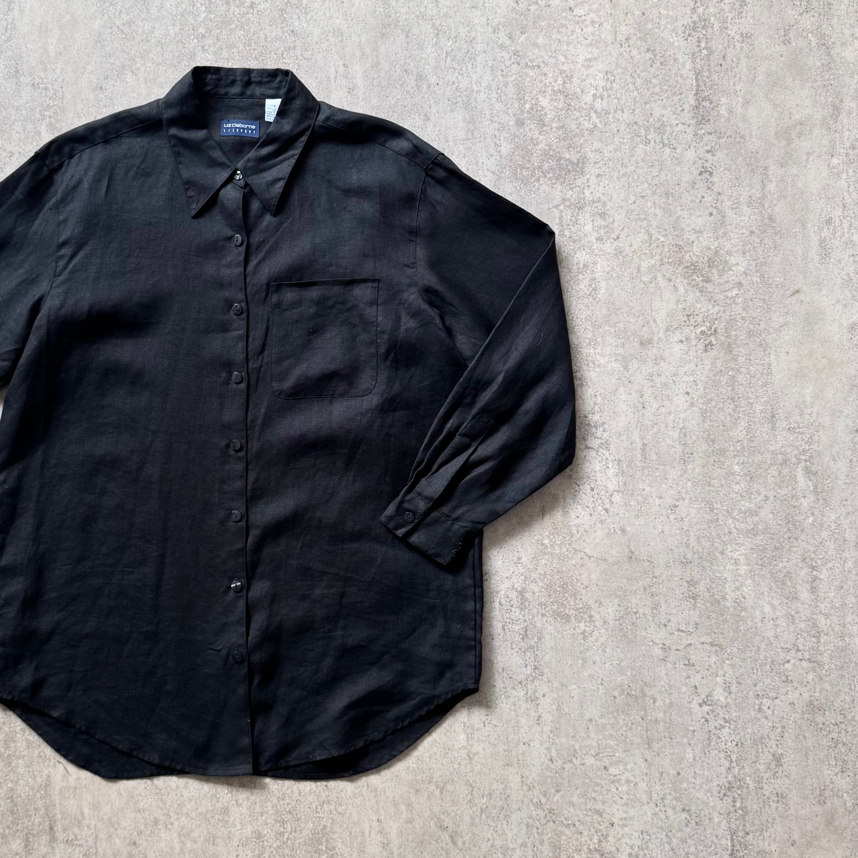 00s Claiborne linen dress shirt "black"
