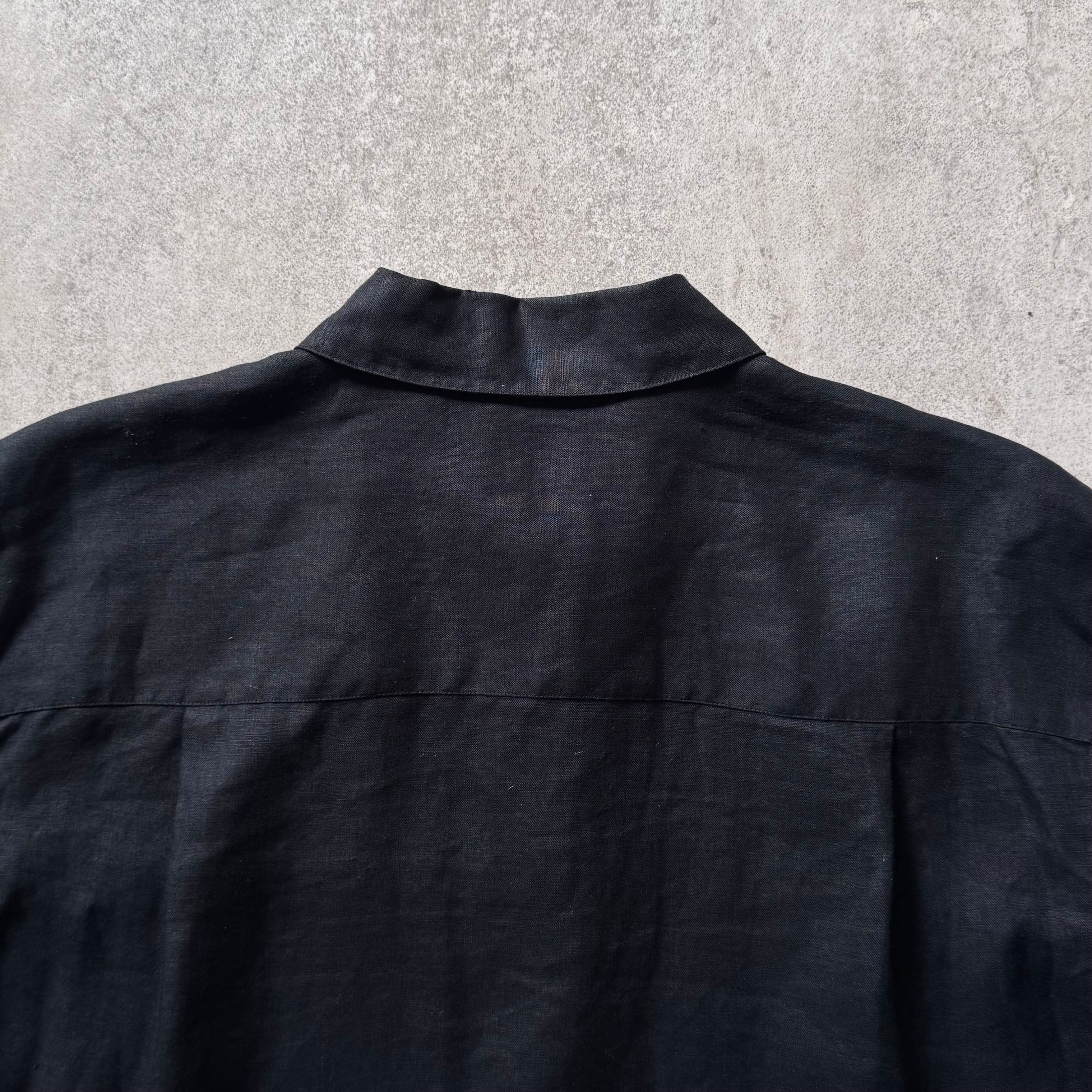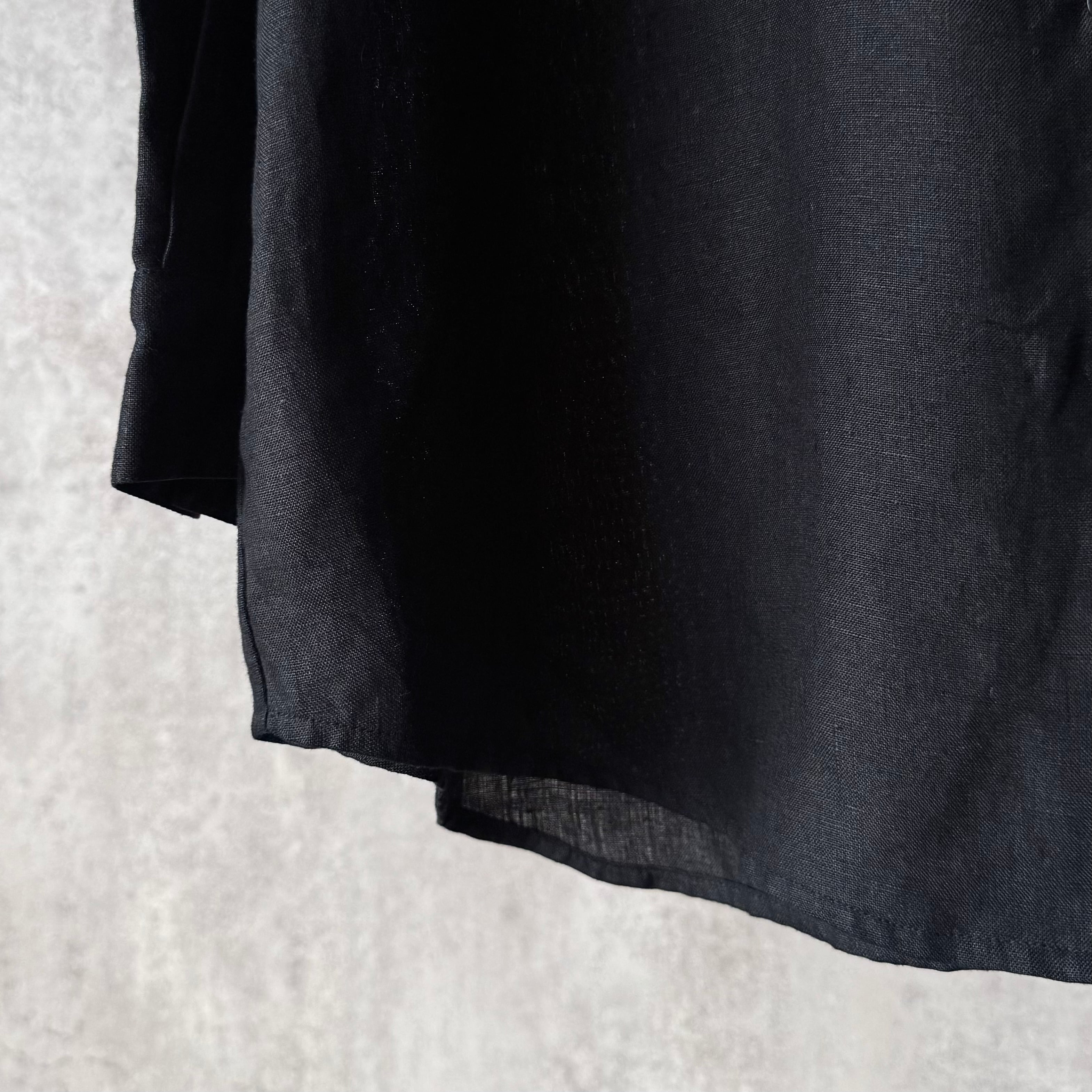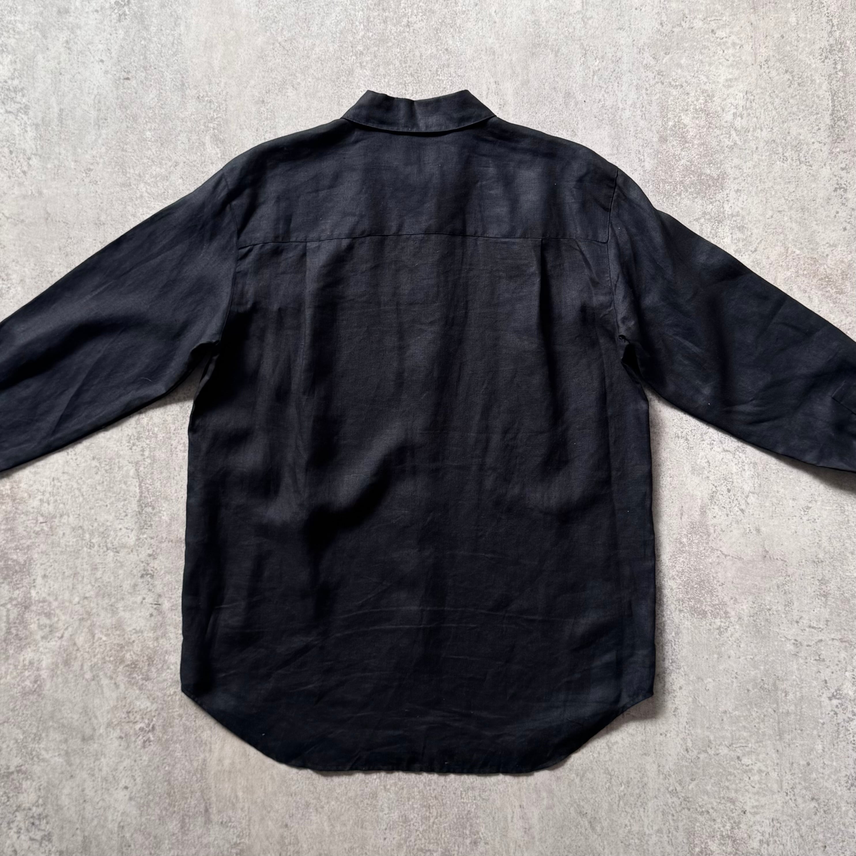 ブラックカラーのリネン長袖シャツ